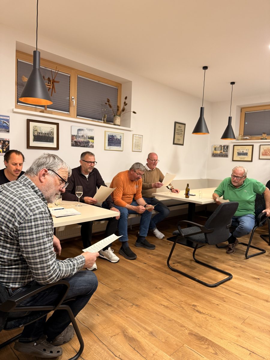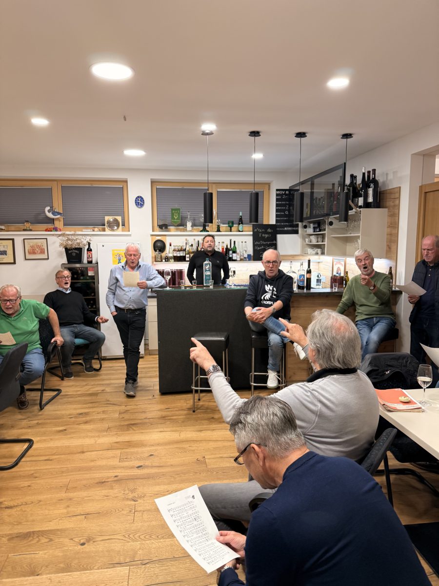 Jeden Dienstag treffen sich die 24 Sänger im Vereinsheim und proben gemeinsam an altem und neuem Liedgut. Sei es in Kleingruppenproben oder im Gesamtchor. Chorleiter Wolfgang Puchtler fordert die Stimmen seiner Sänger in unnachahmlicher Weise jeden Dienstag immer wieder aufs Neue. Intensiv wird bereits für die kommenden Auftritten am Labitschberg „Der singende Weinberg“, im Loisium, in Hamburg und für unseren „Bunten Abend“ im November geprobt.